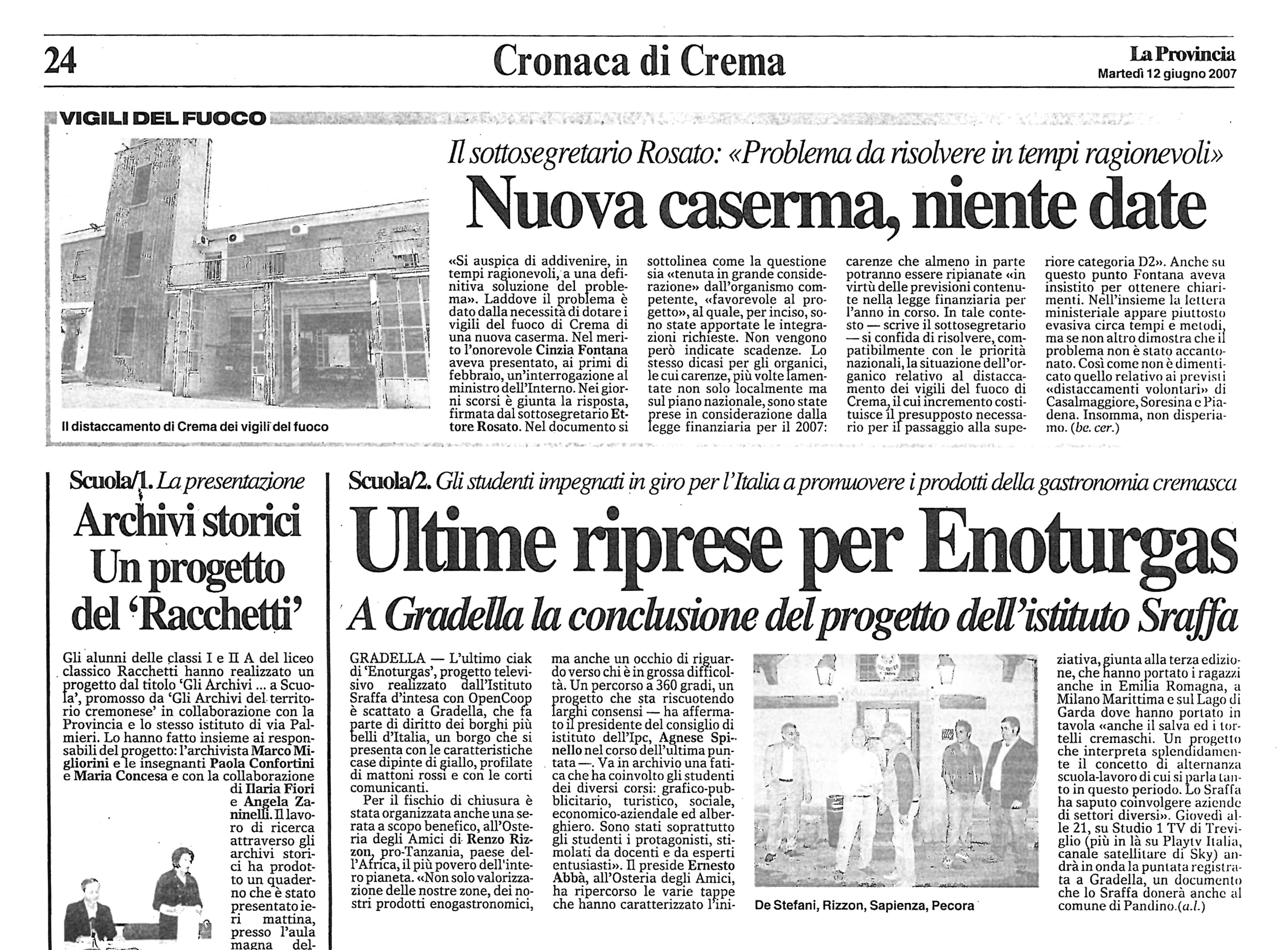 La Provincia giugno 2007 - A Gradella la conclusione del progetto dell'istituto Sraffa