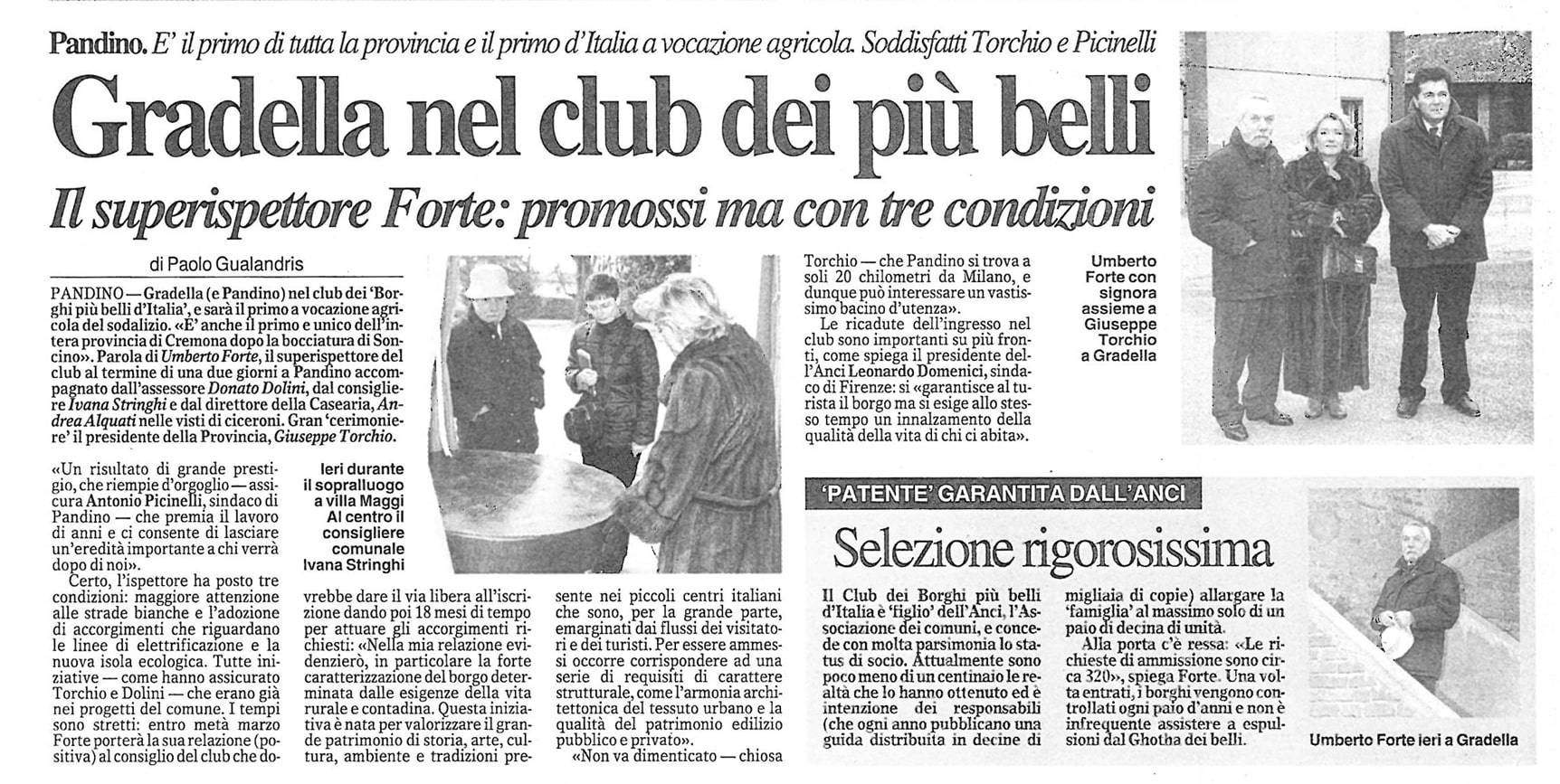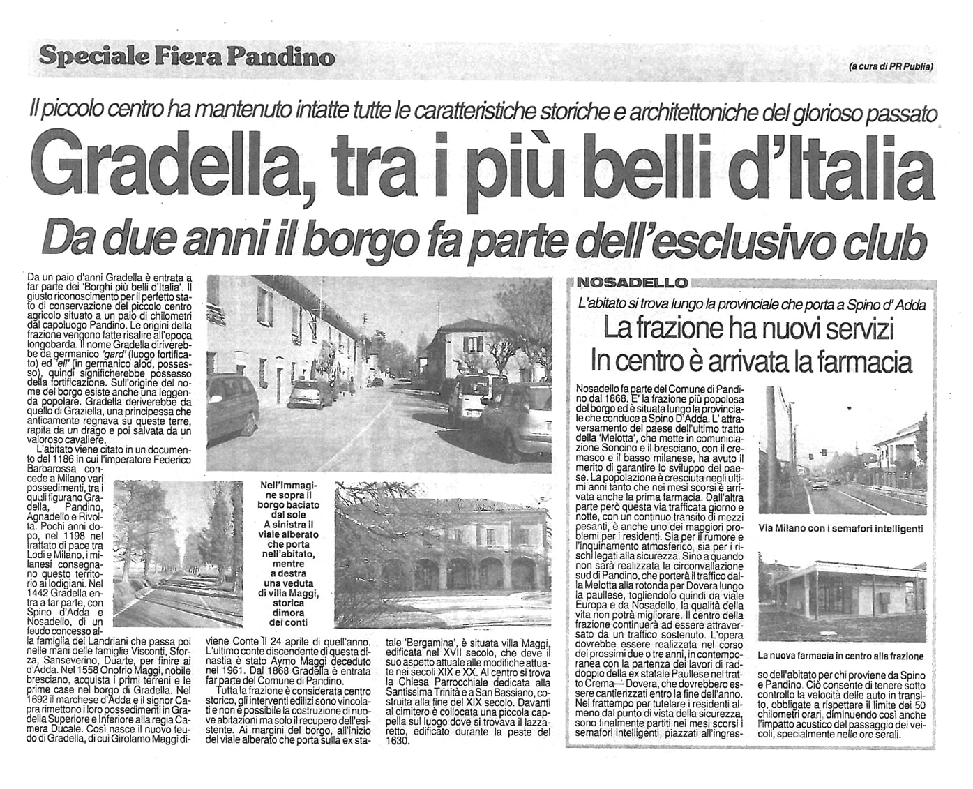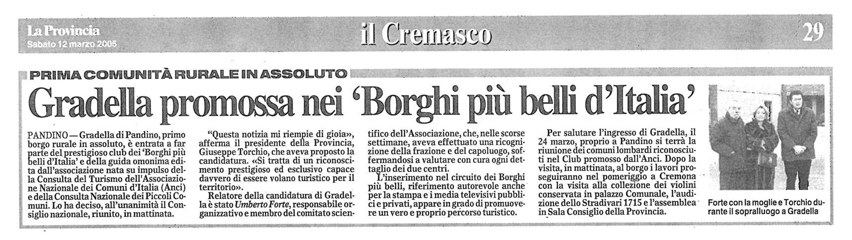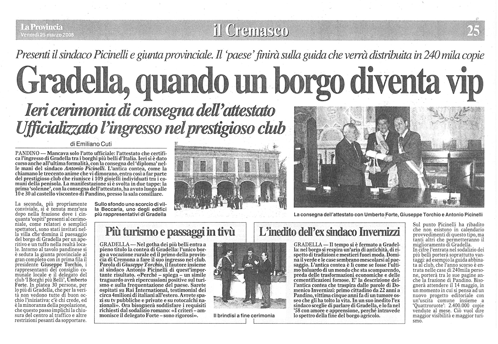 La Provincia 19 marzo 2006 - Gradella eletto uno de "I Borghi più Belli d'Italia"