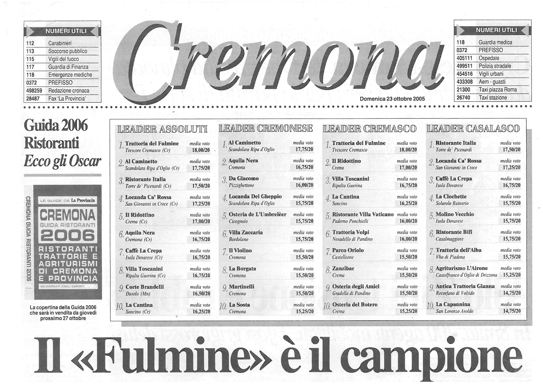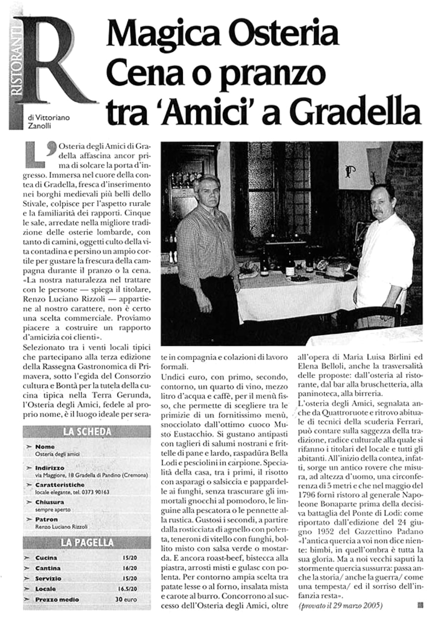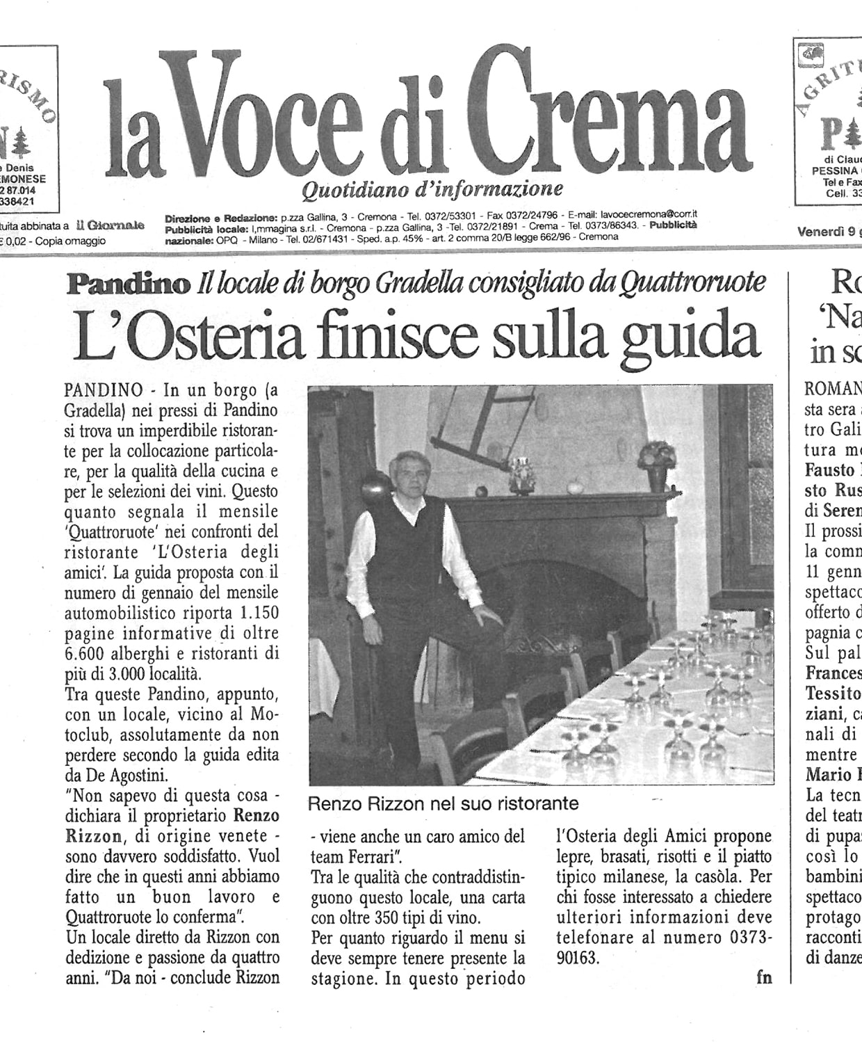 La Voce di Crema gennaio 2004 - Quattroruote consiglia l'Osteria Degli Amici