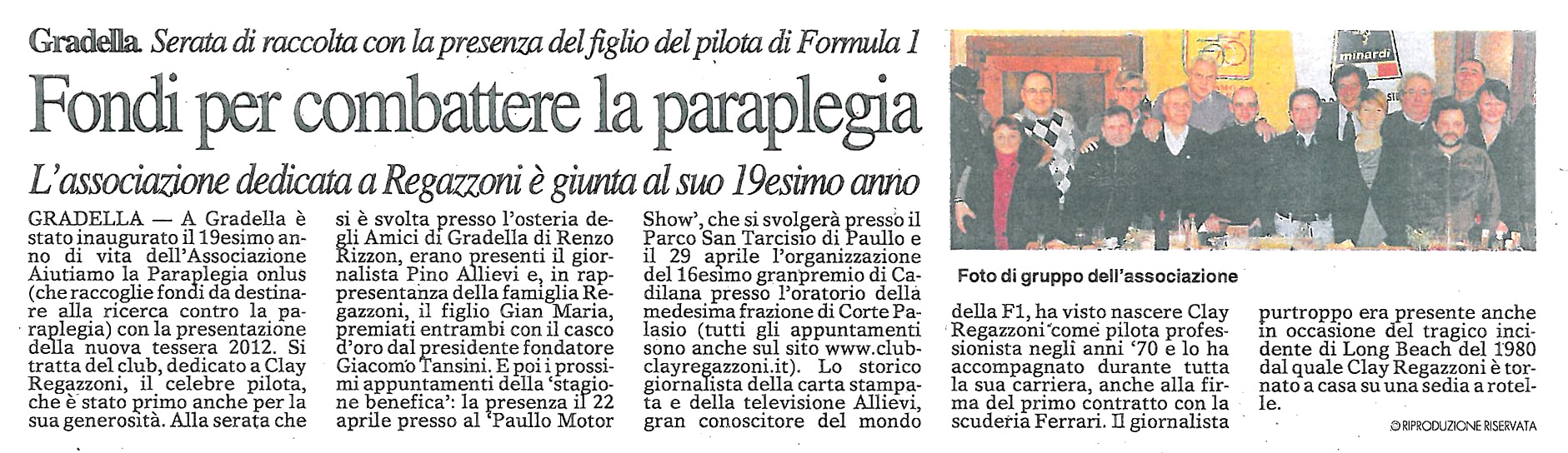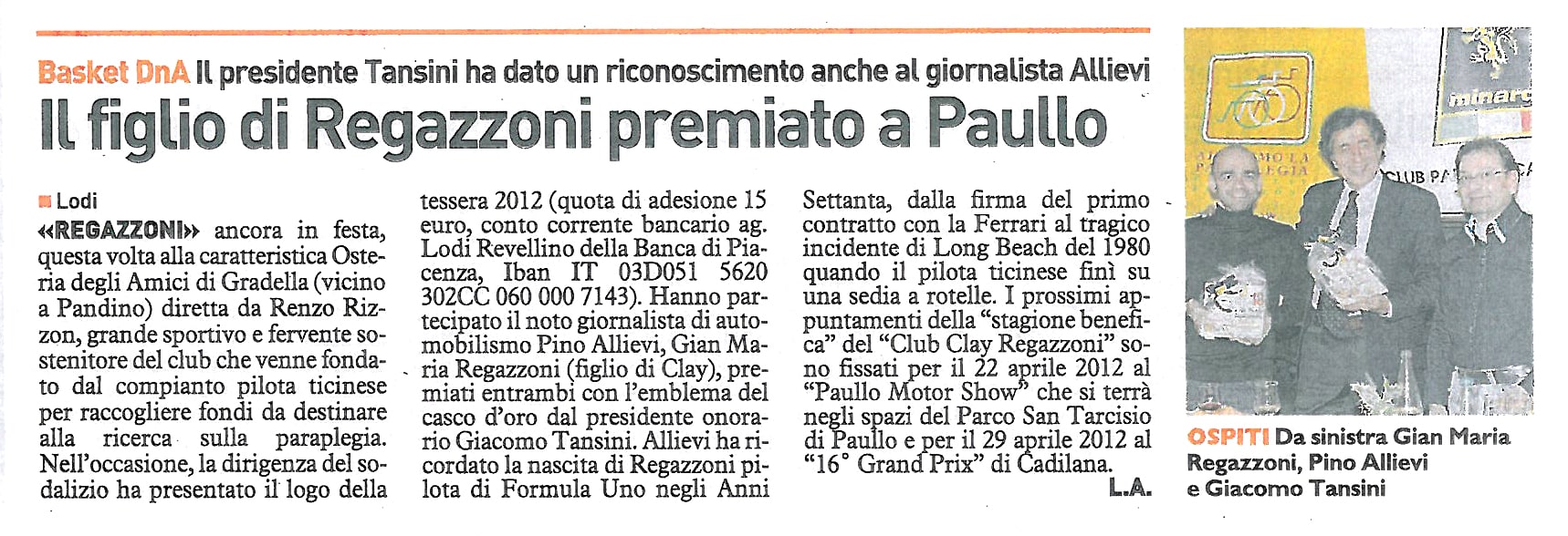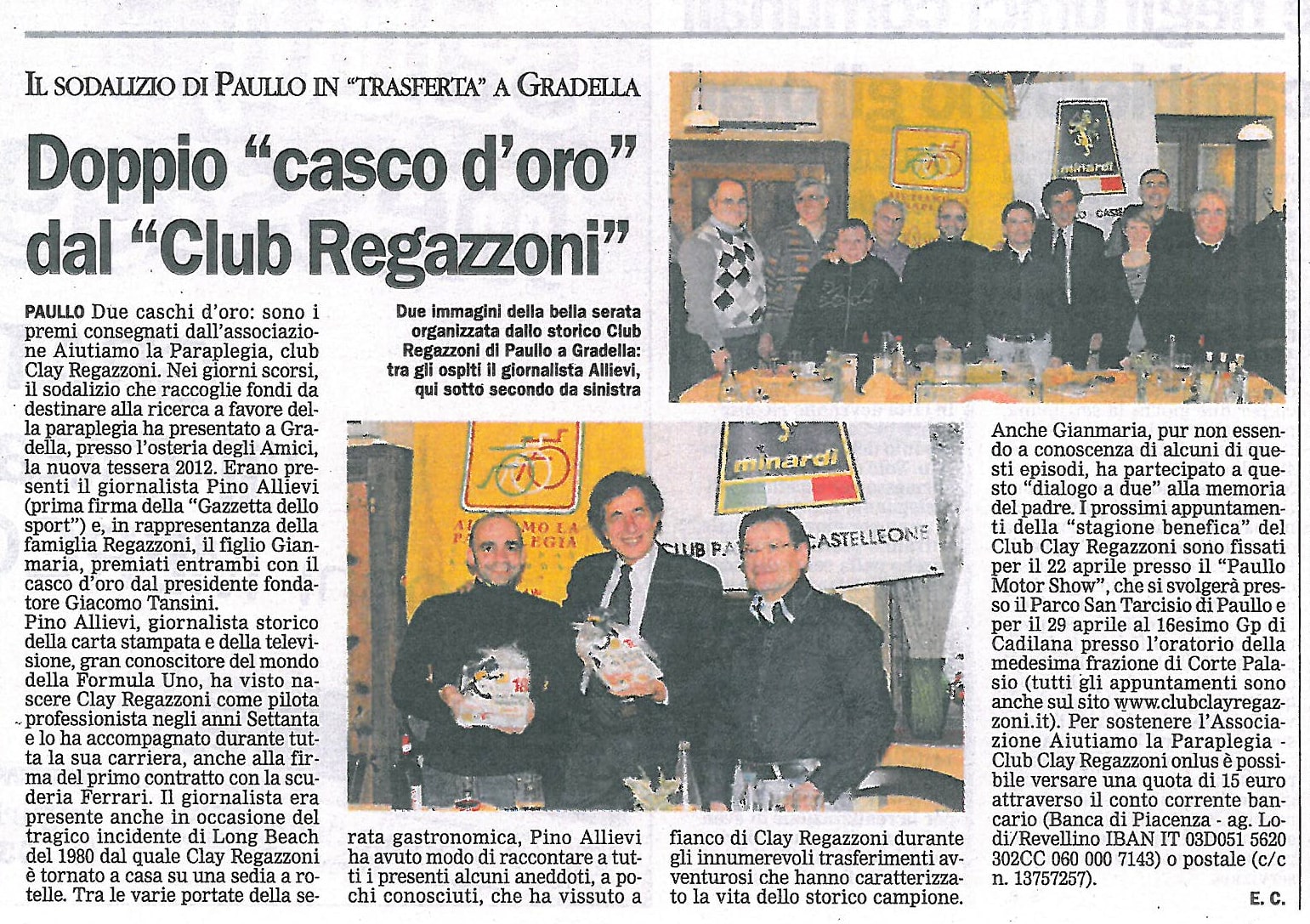 Il Cittadino febbraio 2012 - Il Club Clay Regazzoni festeggia e premia con la consegna di 2 Caschi D'Oro