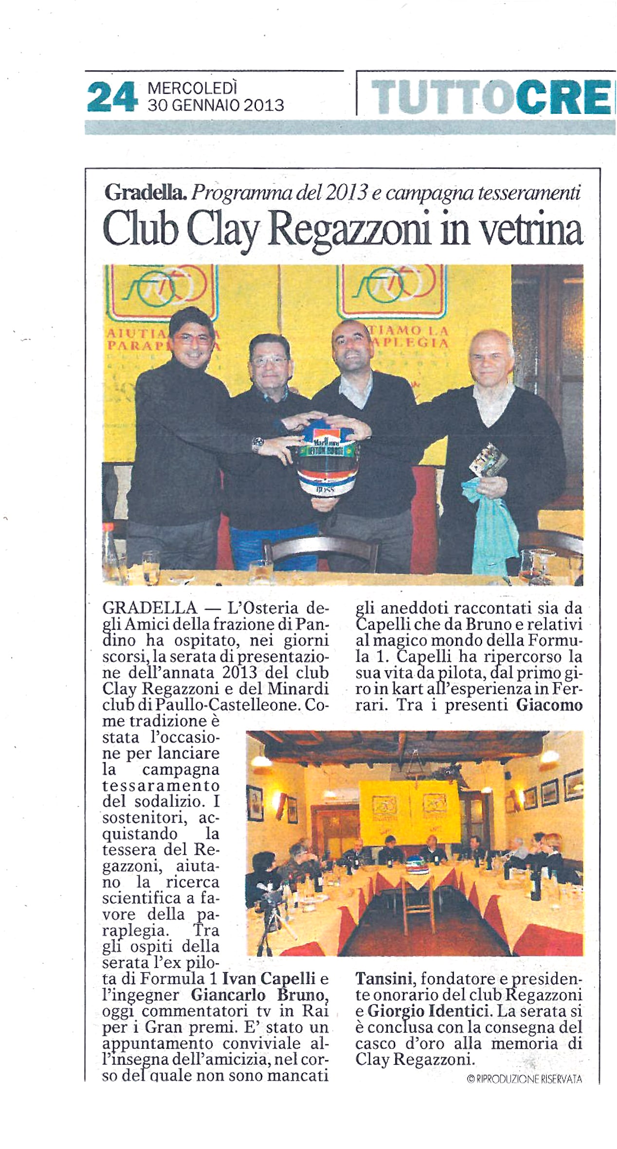 La Provincia gennaio 2013 - L'Osteria ha ospitato il Club Clay Regazzoni per la serata Presentazione 2013