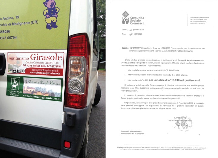 Mezzo di trasporto a disposizione per il trasporto sociale del territorio cremasco