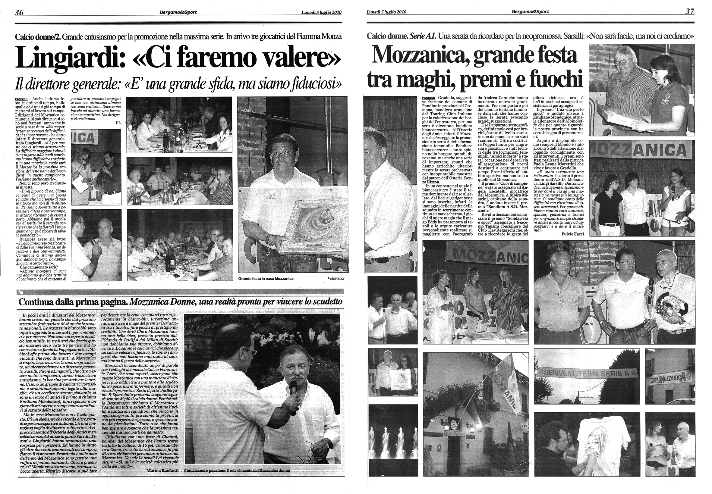 Eco di Bergamo luglio 2010 - Festa dell'ASD Mozzanica Calcio Femminile