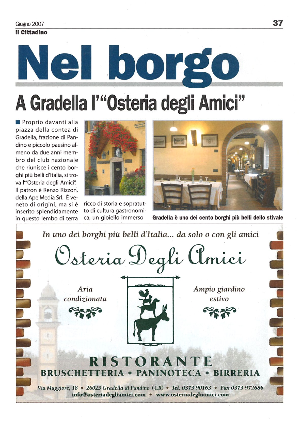 Il Cittadino giugno 2007- L'Osteria Degli Amici vi aspetta nel borgo di Gradella