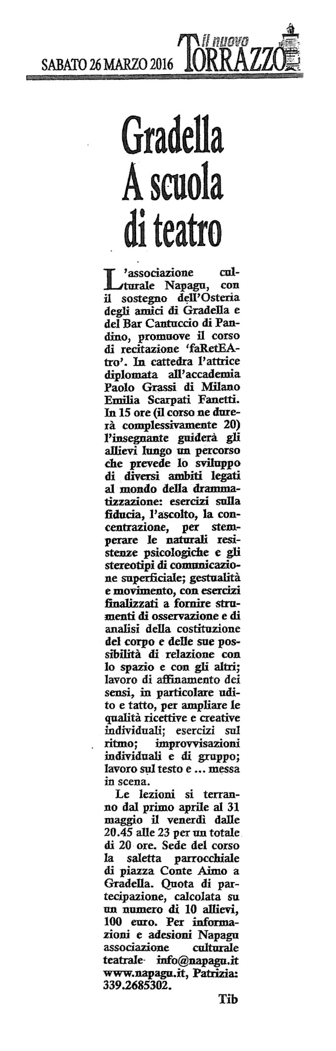 Il Nuovo Torrazzo marzo 2016 - Corso di recitazione nel Borgo di Gradella