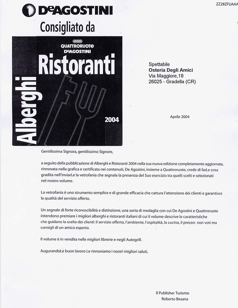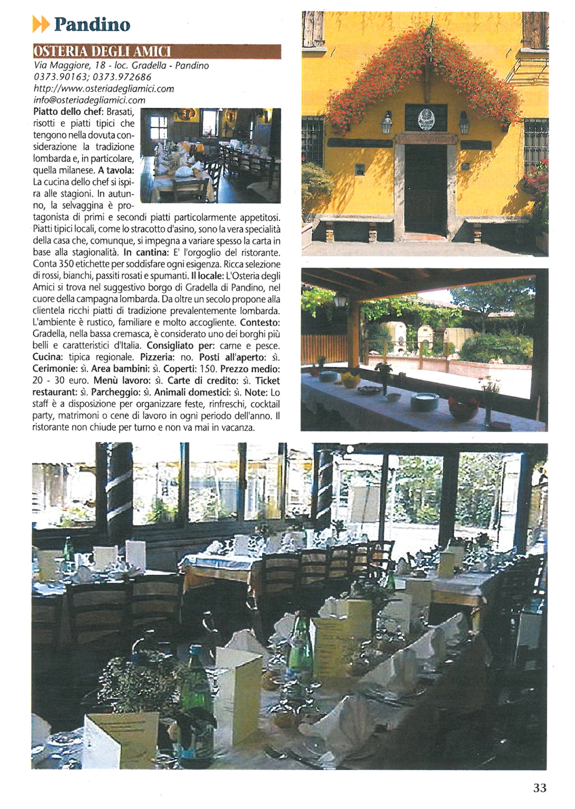 Guida Ristoranti 2009 - L'Osteria degli Amici nella guida Ristoranti 2009