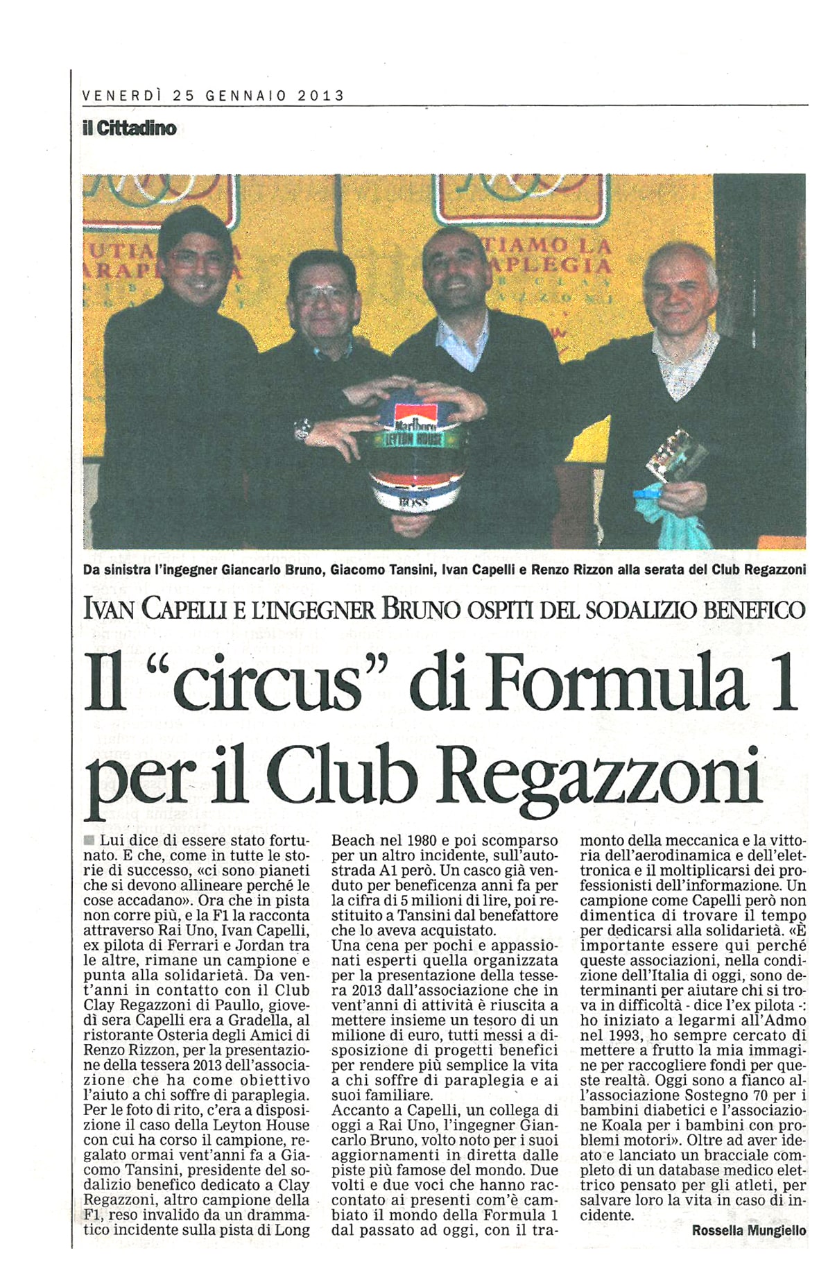 Il Cittadino gennaio 2013 - Ivan Cappelli ospite del Club Clay Regazzoni
