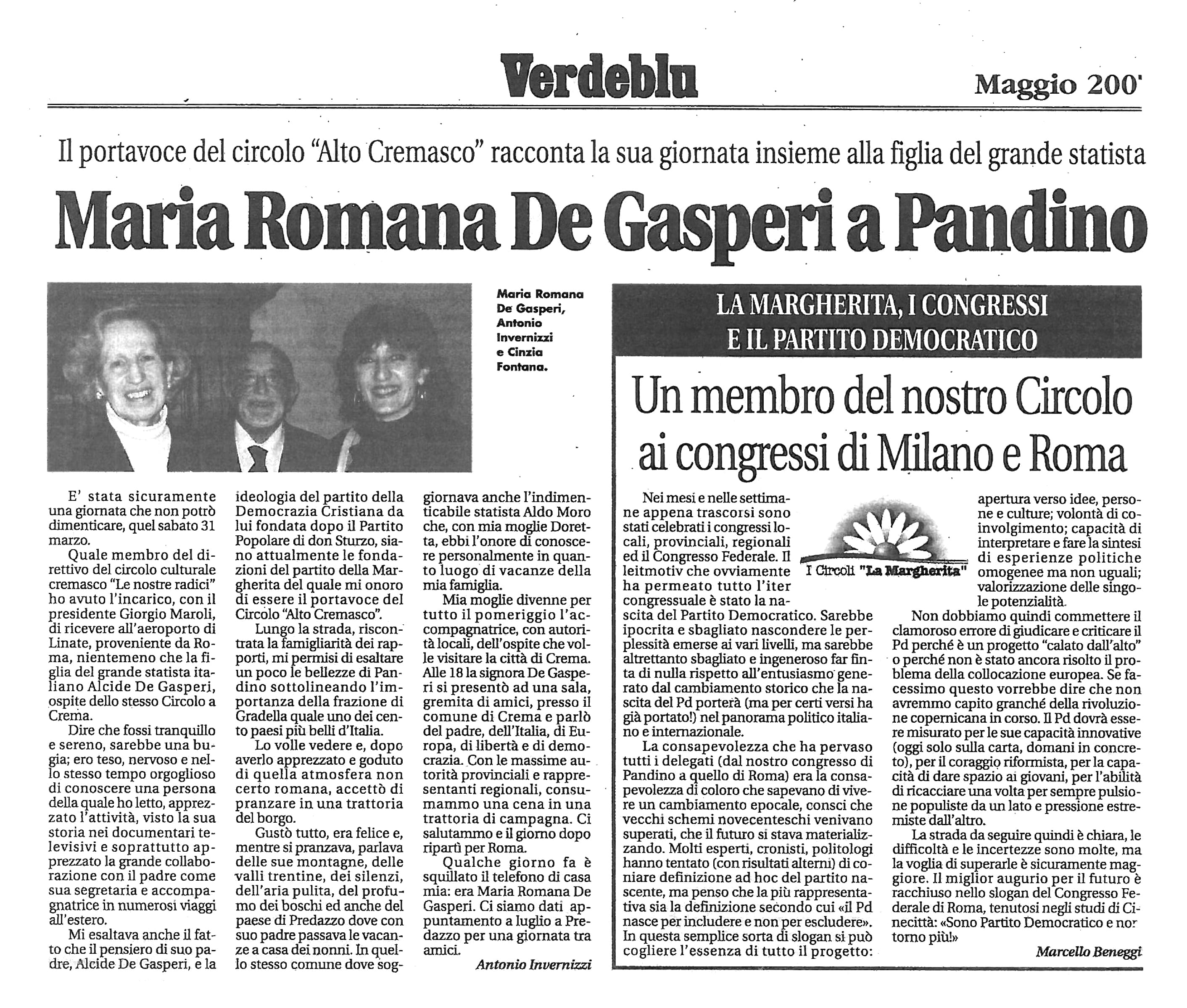Verdeblu maggio 2007 - Maria Romana De Gasperi a pranzo presso il nostro locale