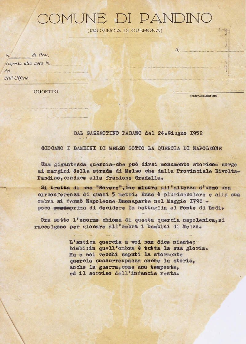 Dal Gazzettino Padano giugno 1952 - Giocano i bambini di Melzo sotto la quercia di Napoleone