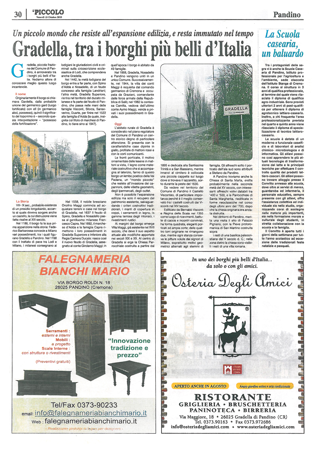 Il Piccolo ottobre 2010 - Gradella: un piccolo mondo che rimane immutato nel tempo